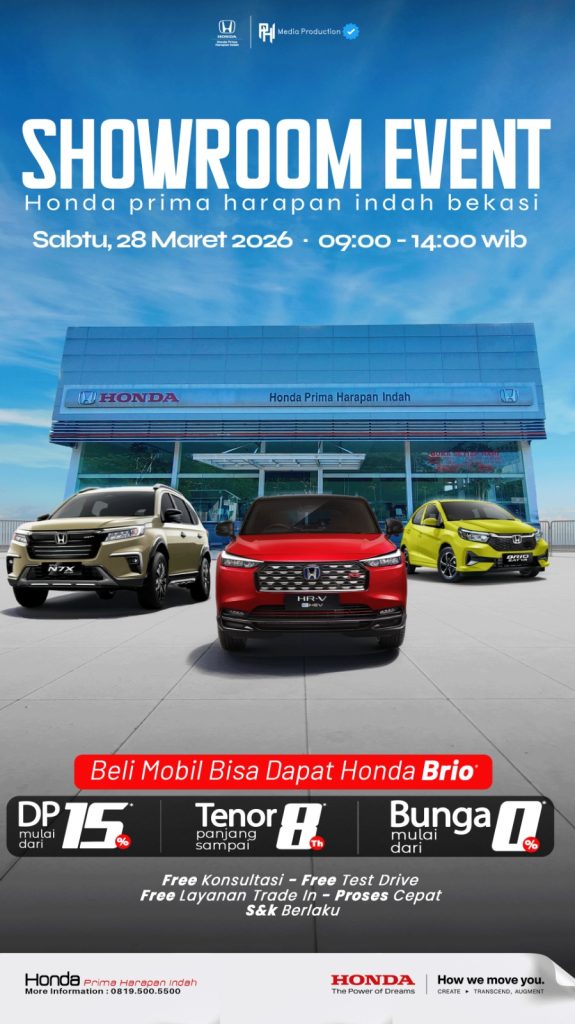 Datang dan dapatkan banyak Promo menarik di acara showroom event Honda prima Harapan indah, anda bisa juga testdrive.